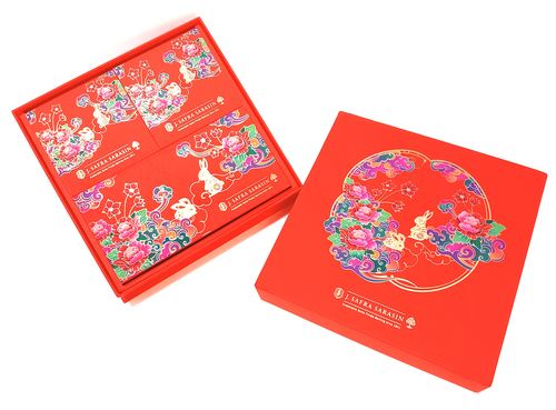 J. Safra Sarasin celebrates the Lunar New Year with lai sees featuring the rabbit with a colorful background of blooming flowers and hints of gold embossment. The envelopes come in long and short forms in an elegantly designed box set.