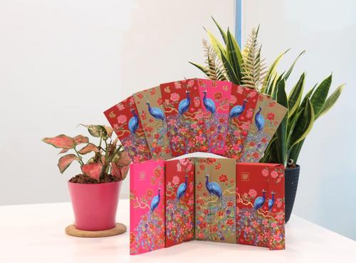 UBP’s 2023 red packet motif features an auspicious peacock perched on a tree branch with a background of Magnolia and pink Platycodon flowers. Each element is designed with unique meaning and symbolic representations while being printed on 100 percent FSC (Forest Stewardship Council) material that is eco-friendly and ethically produced.