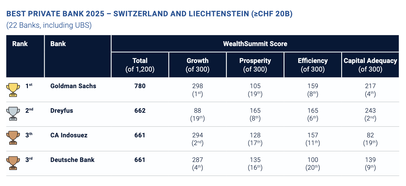 Goldman Sachs Tops Swiss Private Banks