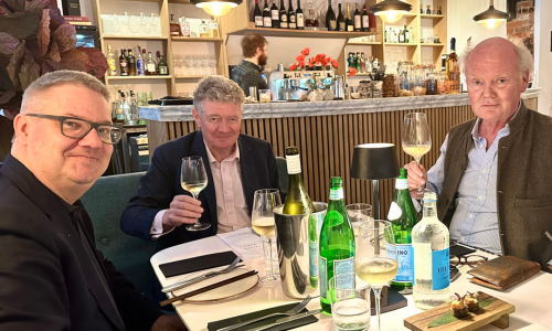 Philipp Schwander at lunch with Christian Seely (center) and Nicholas Coates at «Smoking Lobster» in Cowes. (Image: Courtesy)
